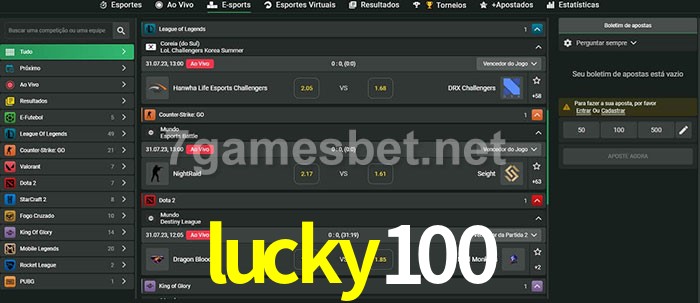 A aposta lucky100 oferece aos jogadores a experiência mais conveniente de apostas em eSports!
